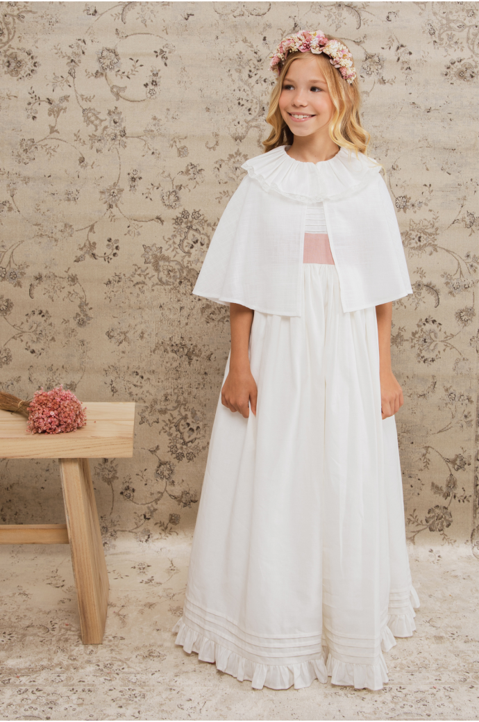 Capa de tejido rústico con puntilla en el cuello.