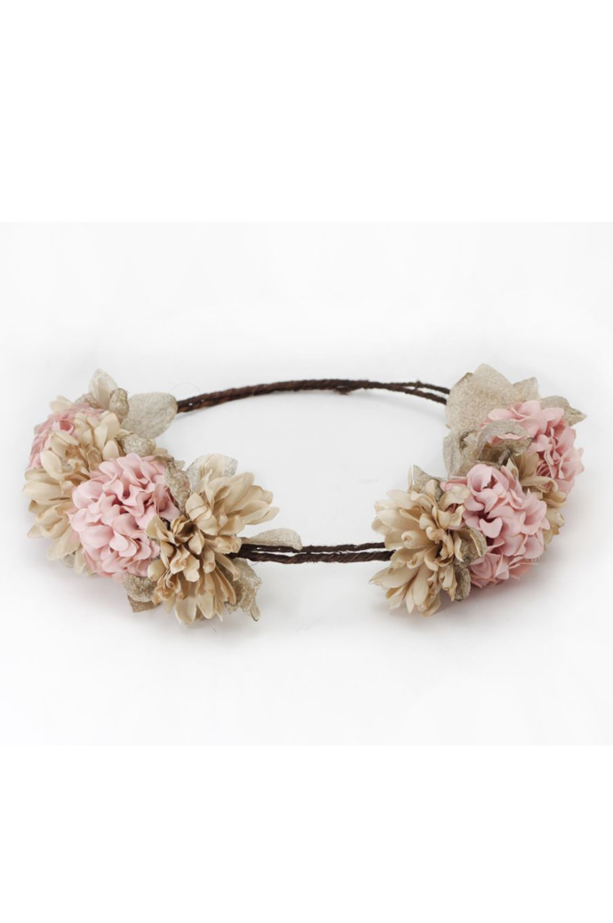 Double crown in rustic wire with side decorations with golden petals and nude flower.